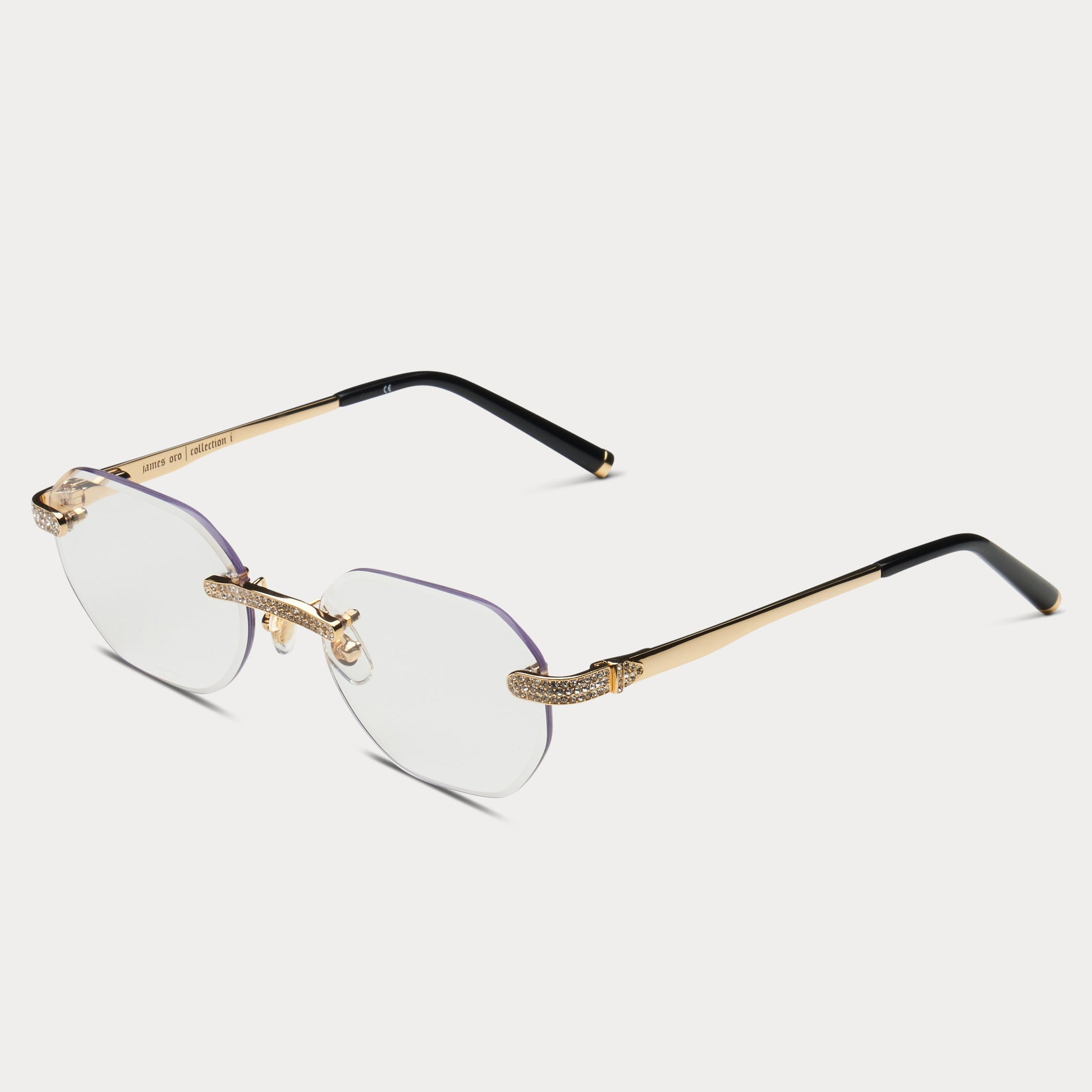 - For Round Faces: Look for angular, geometric frames to add definition. Rectangular and square shapes, like the James Oro "Serpent" or "Javelin Gem Cut," create contrast and can help elongate the face. Avoid small or round frames that can exaggerate roundness.